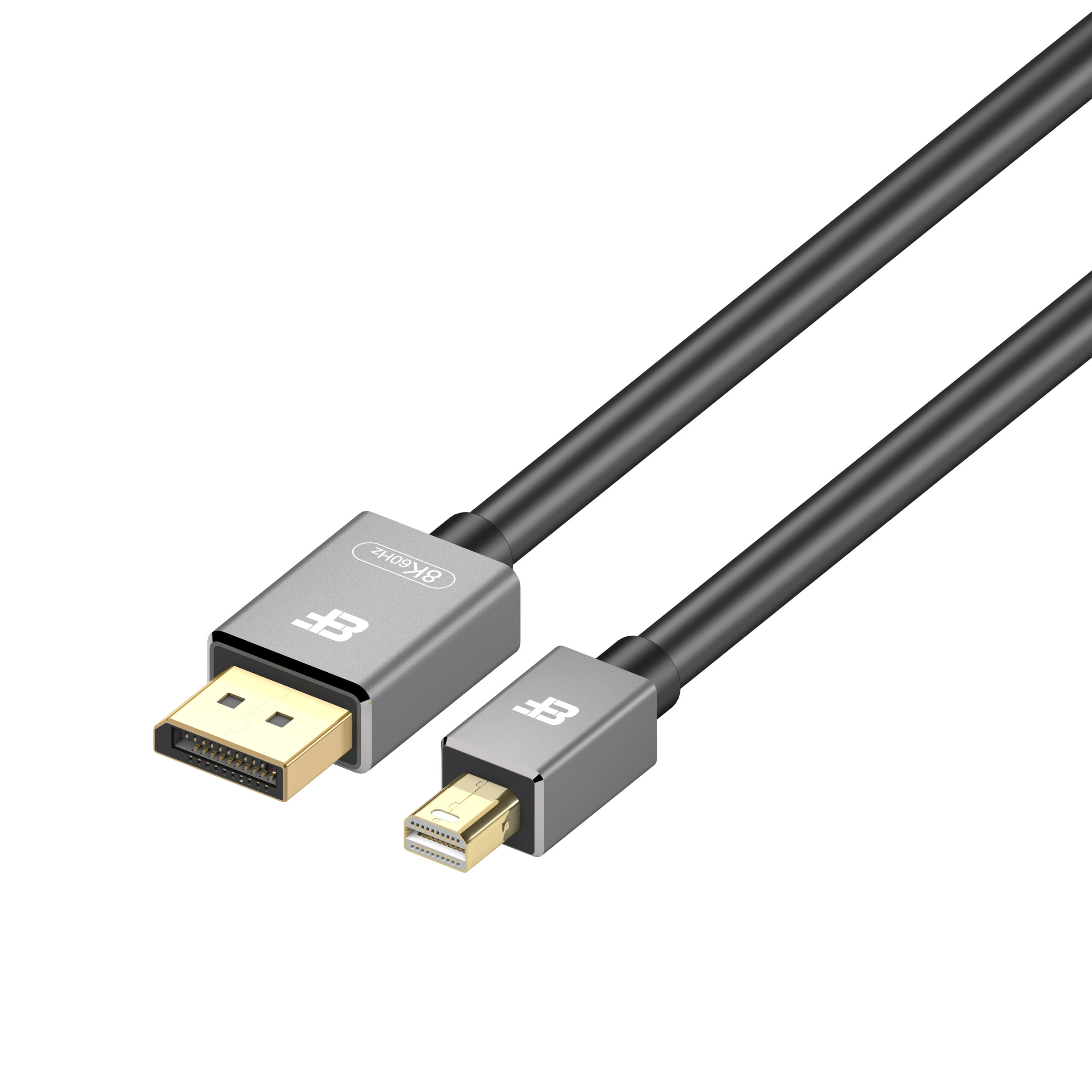 BF+ Mini DisplayPort to DisplayPort Converter Cable (BF-2684C) 2.0m – DP 1.4, 8K@60Hz – Mini DP Male to DP Female Adapter – Aluminum Shell, 99.9% Bare Copper, Gray
