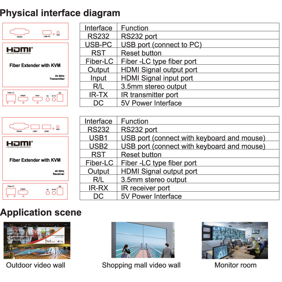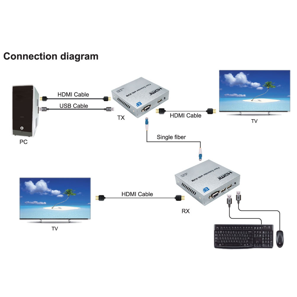 BF-H377F HDMI 2.0V KVM Extender Over Fiber 20km
